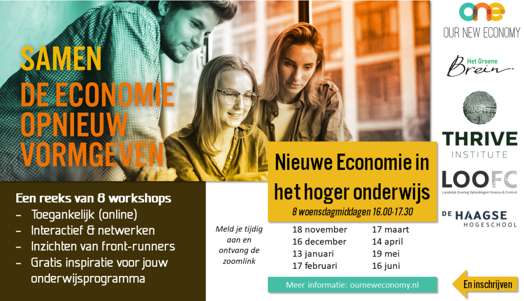 Simpel, elegant idee: docenten en lectoren met interesse in de nieuwe economie bij elkaar brengen, inspireren en samen stappen zetten om van mooie ideeën naar echte onderwijsinnovaties te komen. We organiseren een serie online collegiale bijeenkomsten ‘nieuwe economie in het onderwijs’. De insteek is vanuit het instellingen voor het hoger onderwijs in Nederland, maar vanuit een andere achtergrond zijn de meeste workshops goed te volgen.