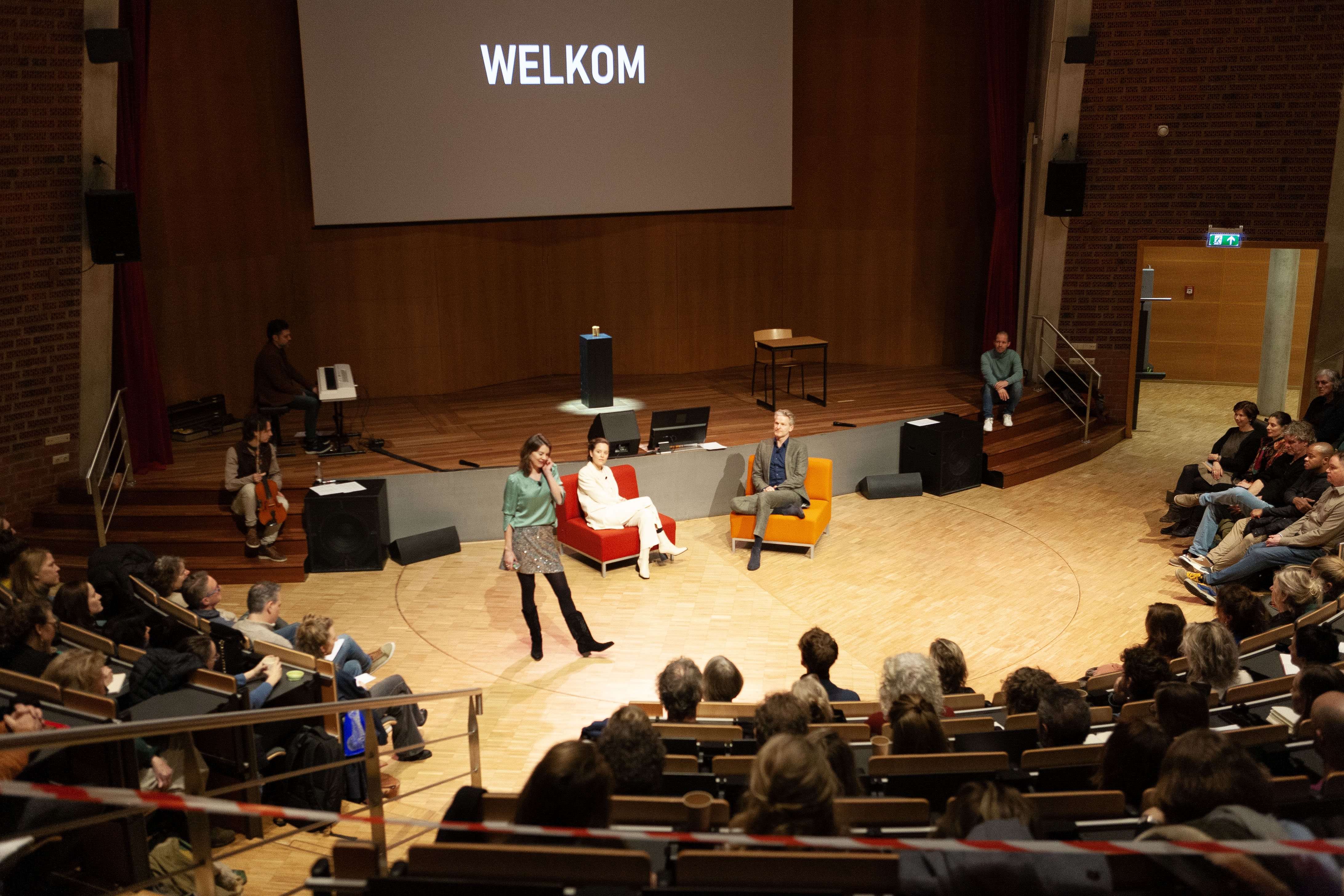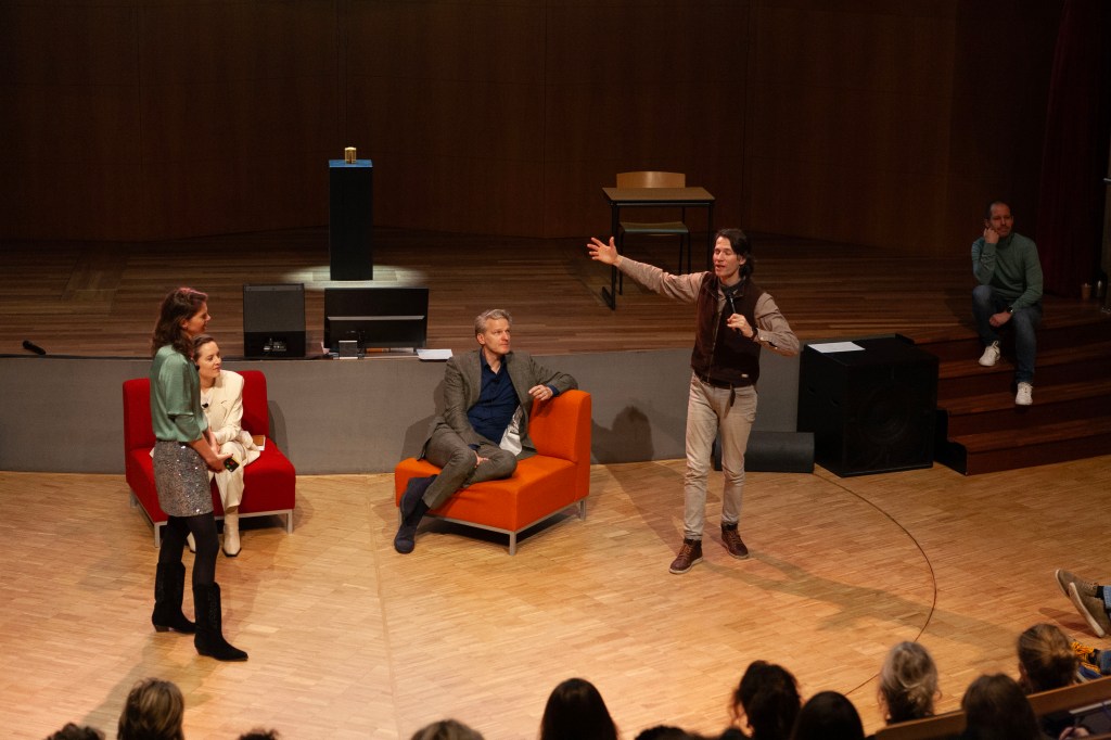 Fotoregistratie van interactieve presentatie Onzekere Zaken op 26 januari 2024. Met Tessa Cramer, Merlijn Twaalfhoven, Dolf Nijsen, Jacco van Uden en Marjolijn Zwakman. Fotografie: Edwin Zwakman.