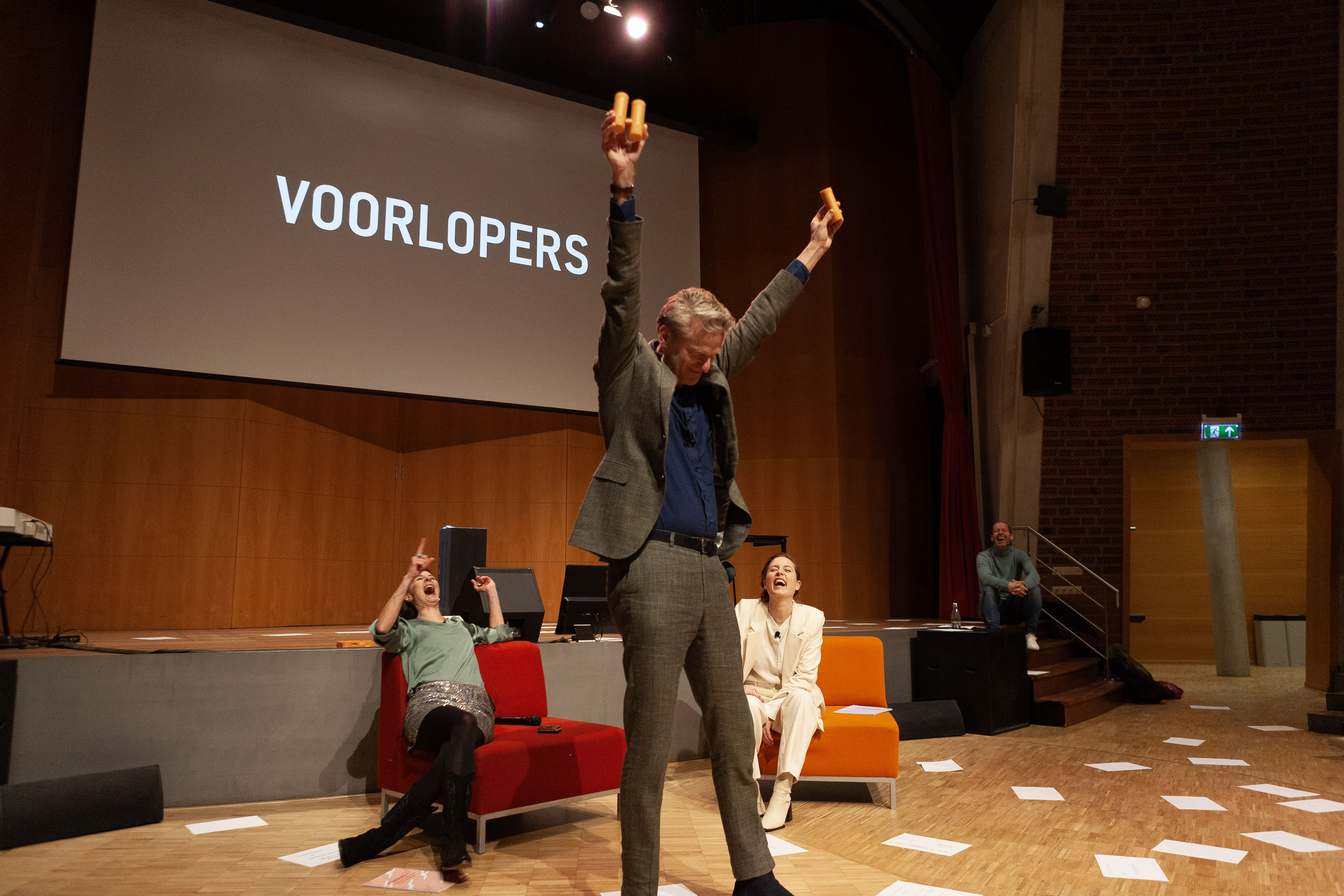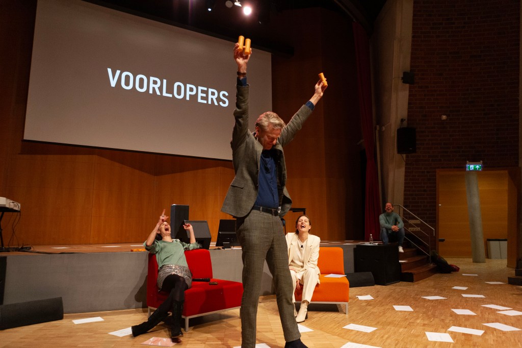 Er waren zo’n 180 onderwijsvernieuwers en mensen die zich bezighouden met maatschappelijke vernieuwing in bredere zin. Een inspirerende zaal vol met, zoals wij ze graag noemen, ‘voorlopers’. We hebben gemerkt dat er onder voorlopers vooral behoefte is aan tijd en ruimte om elkaar te kunnen ontmoeten en kennis en dilemma’s uit te wisselen zonder meteen met een ‘oplossing’ te hoeven komen.