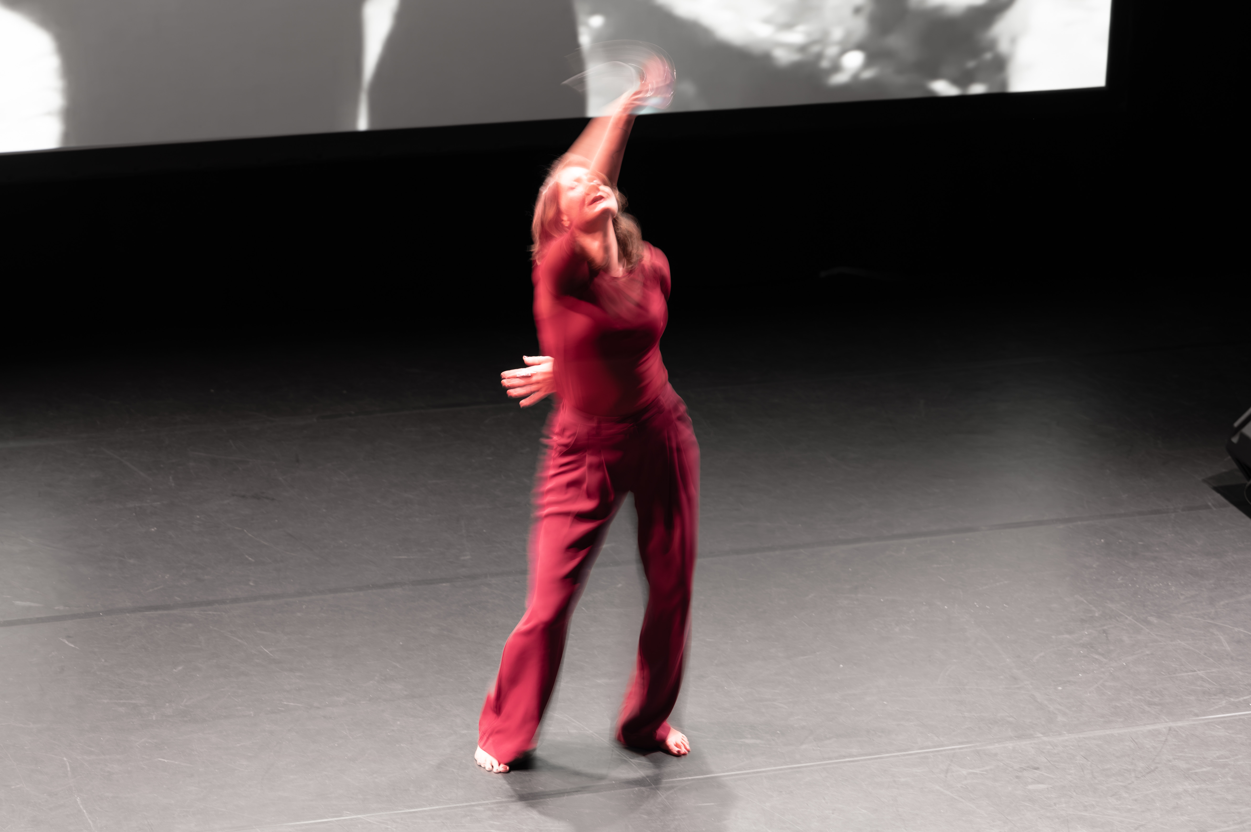 Terwijl de video speelde, bewoog zij samen met Marga door de ruimte.